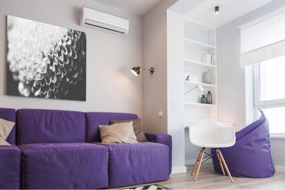 If your living space has a neutral pallet and you’re looking for a piece of furniture to add interest to your area, try to find a colored sofa. Incorporating a velvet Ultra Violet sofa into your living room will make your space feel fun and mysterious without overwhelming the room.
